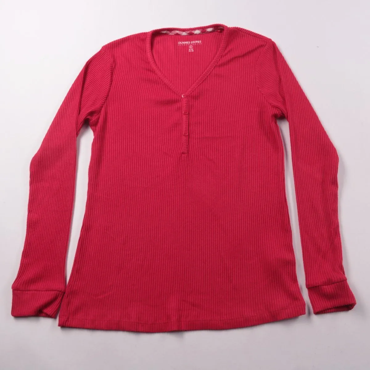 Женский лонгслив Dunnes Stores красного цвета из фактурного трикотажа в рубчик, с V-вырезом и планкой на пуговицах. Подойдёт для повседневной носки и как базовый слой в прохладную погоду. Материал с эластаном хорошо тянется и комфортно садится по фигуре.