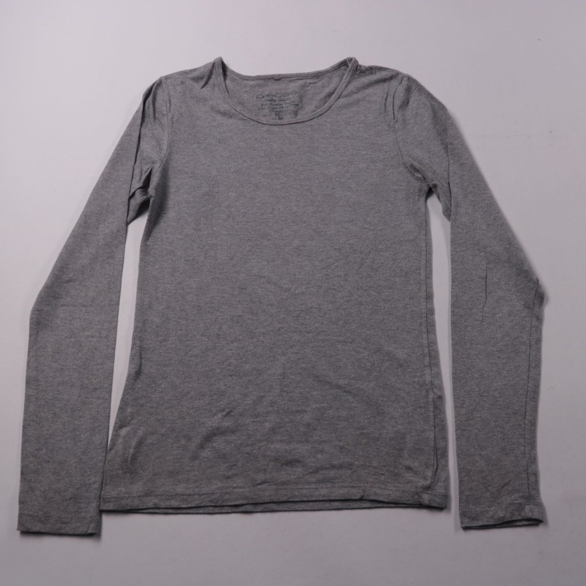 Женский лонгслив Pieces серого цвета с округлым вырезом и длинным рукавом. Подойдёт для повседневной носки и в качестве базового слоя под кардиган или жакет. Тонкий трикотаж хорошо тянется и удобно сидит по фигуре.