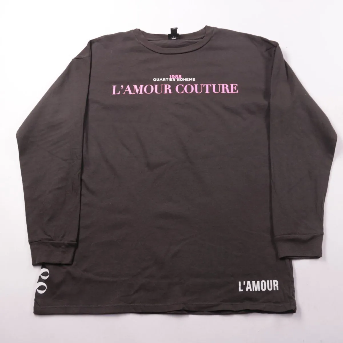 Женский лонгслив River Island тёмно-коричневого цвета с принтом L’AMOUR COUTURE спереди. Подойдёт для повседневных образов в прохладную погоду и как базовый слой. Натуральный хлопок хорошо пропускает воздух и комфортен в носке.
