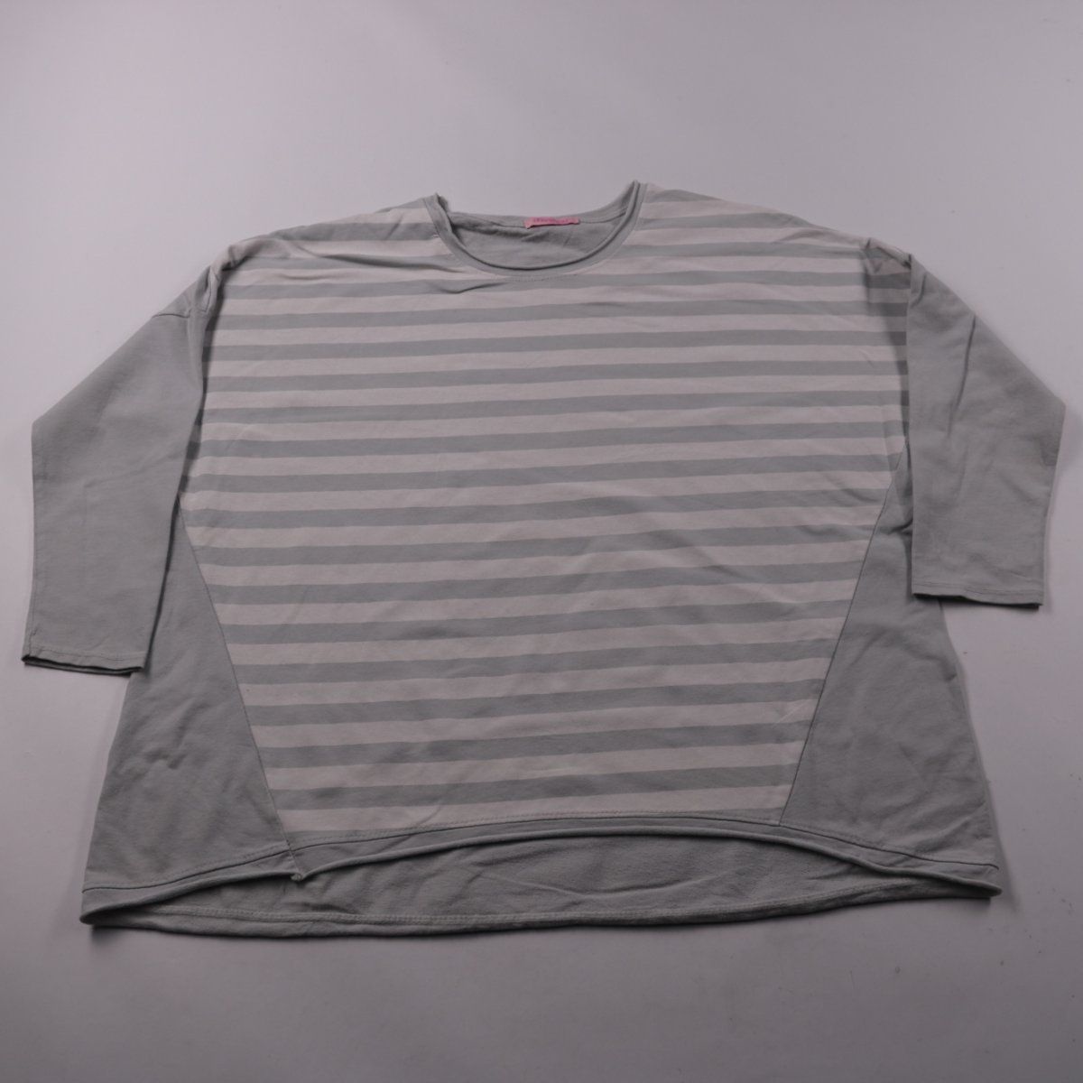 Женский лонгслив Obsession серого цвета в полоску, свободного оверсайз-кроя. Подойдёт для повседневных образов и комфортной носки дома или на прогулку. Хлопковая ткань хорошо дышит и приятна к телу.