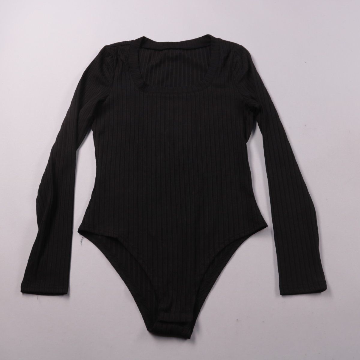 Женское боди Shein в чёрном цвете, фактура в рубчик, с длинным рукавом и квадратным вырезом. Подойдёт для повседневных образов и как базовый верх под жакет или кардиган. Эластичный материал хорошо садится по фигуре и не выбивается из-под одежды.