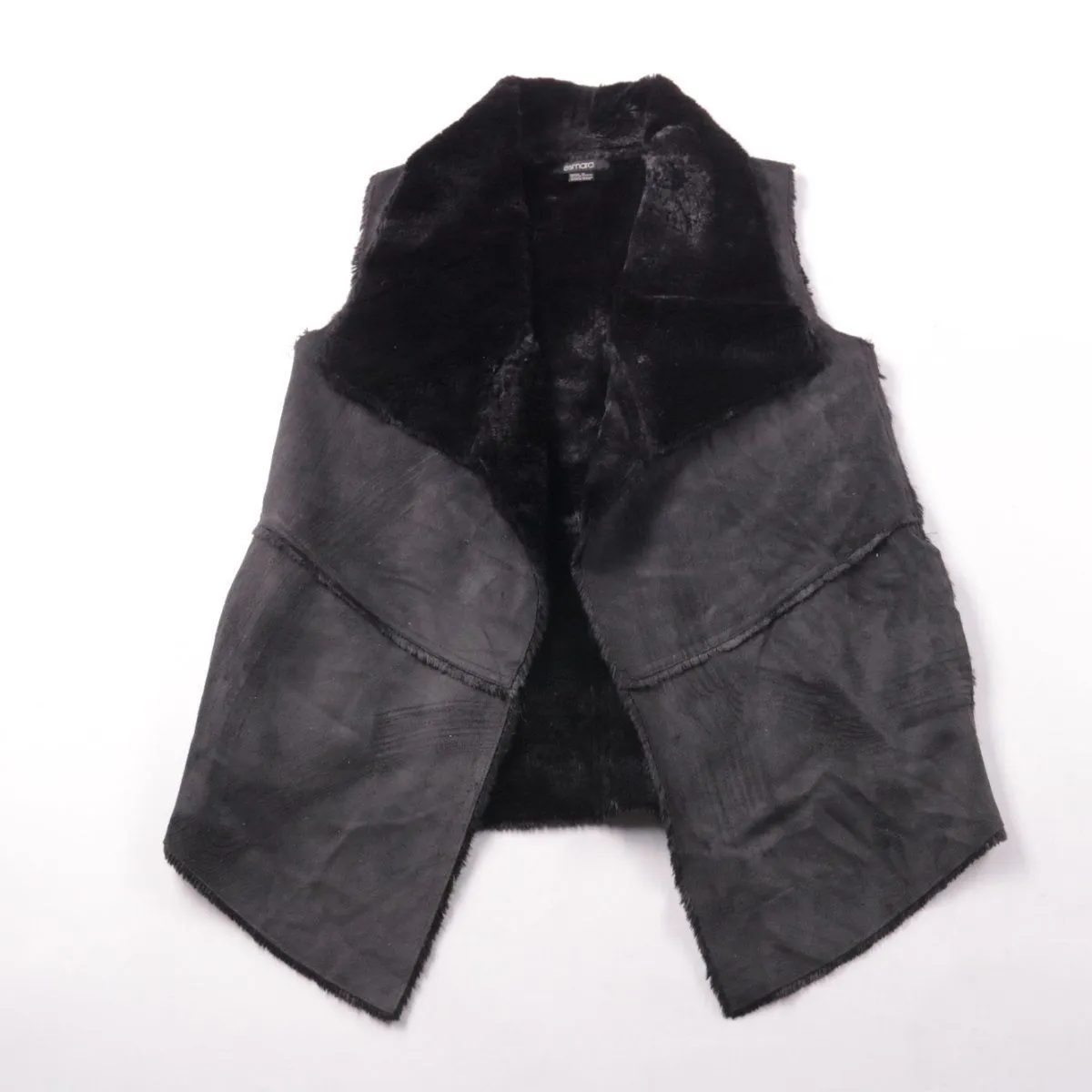 Женский жилет Esmara чёрного цвета с отделкой под мех, без рукавов и с открытым передом. Подойдёт для прохладной погоды и многослойных образов. Практичен как дополнительный утепляющий слой поверх базовых вещей.