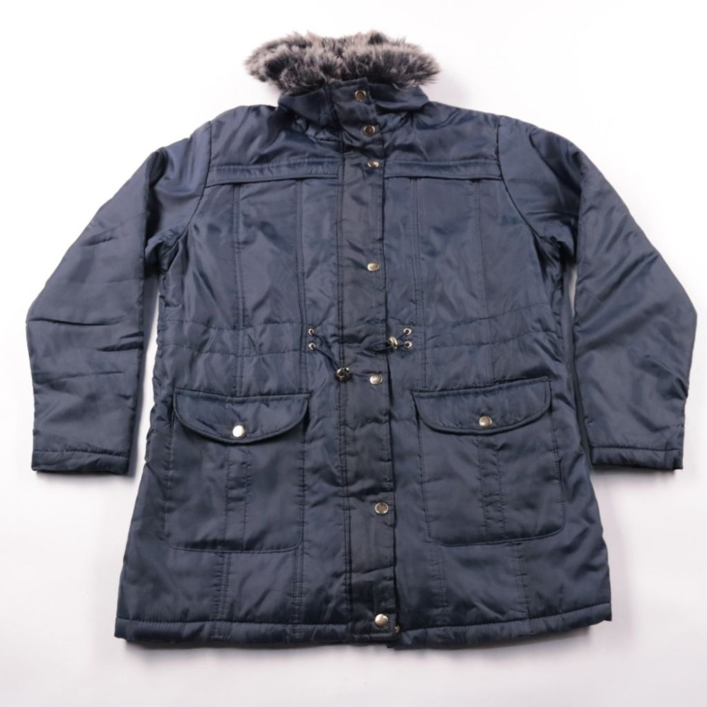 Утеплённая женская куртка с капюшоном и меховой отделкой, на кнопках. Подойдёт для повседневной носки в холодную погоду и прогулок. Практична за счёт плотной ткани и удобных карманов с клапанами.
