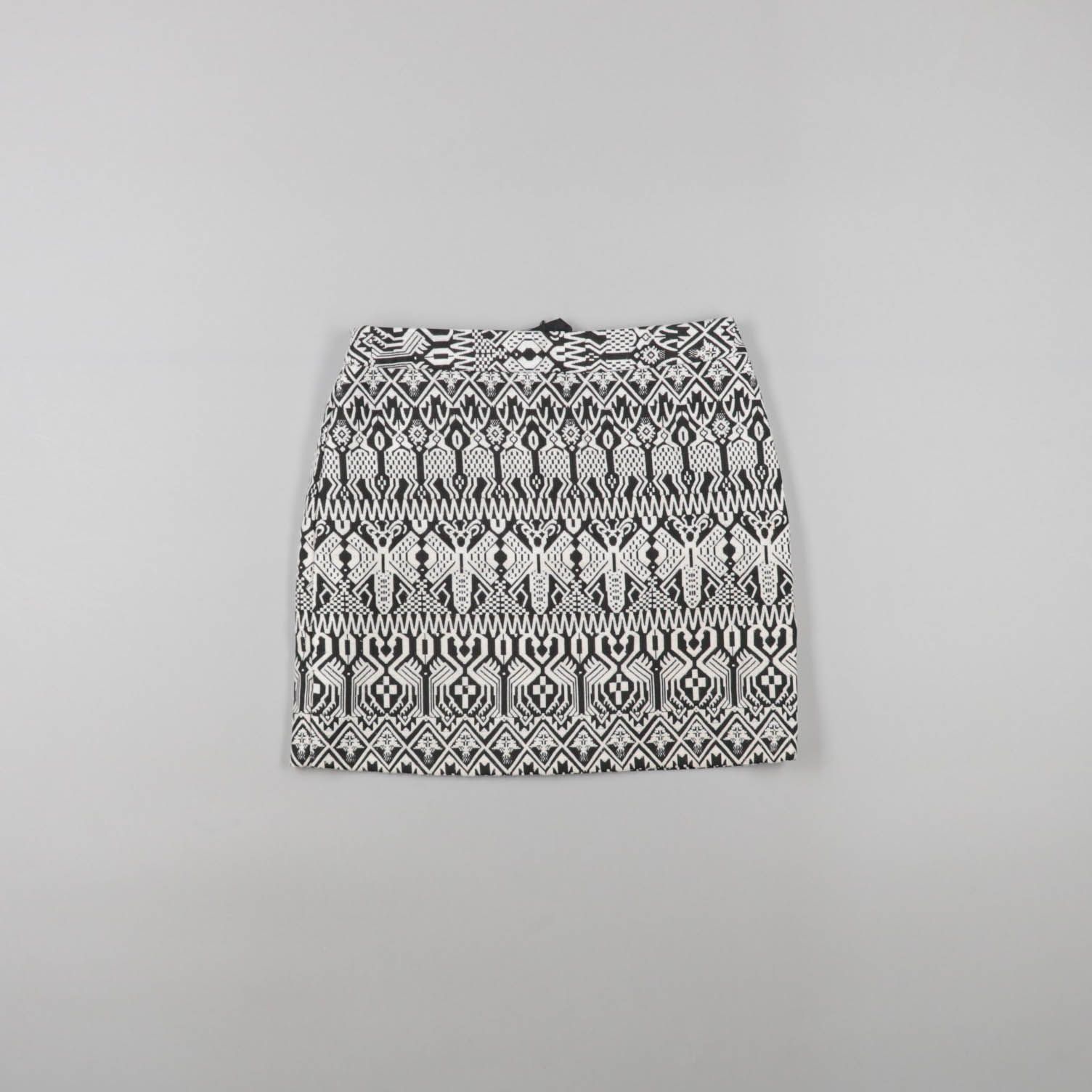 Юбка с геометрическим орнаментом в чёрно-белой гамме, прямого силуэта и длины мини. Подойдёт для летних повседневных образов и отпуска, легко сочетается с однотонным верхом и сандалиями. Практичный плюс — немаркий рисунок и универсальная расцветка.