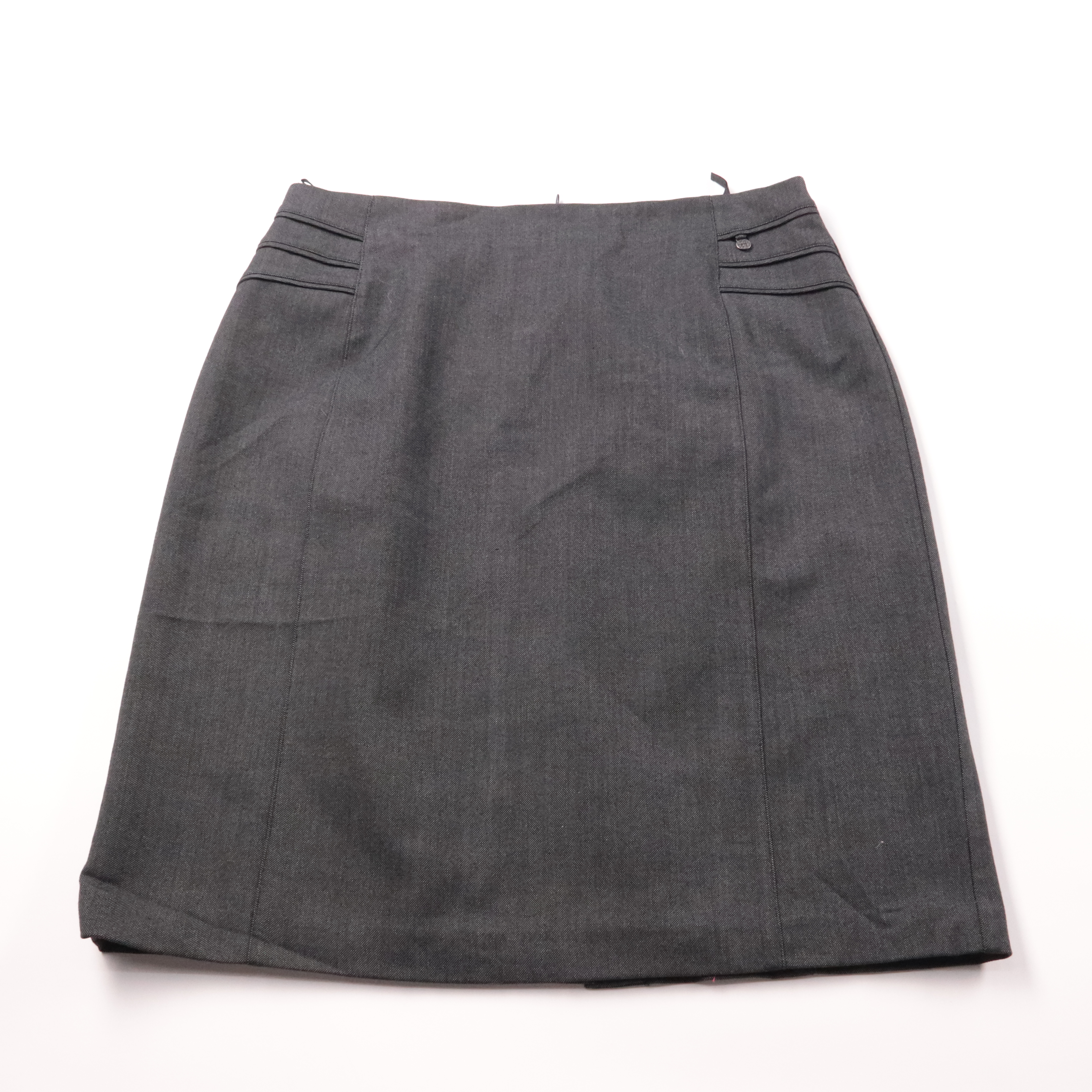 Юбка Charles Voegele прямого кроя в тёмно-сером цвете, с аккуратными декоративными складками у пояса и шлицей сзади. Подойдёт для офиса и повседневных комплектов с рубашкой или водолазкой. Ткань с добавлением эластана хорошо держит форму, а подкладка д...