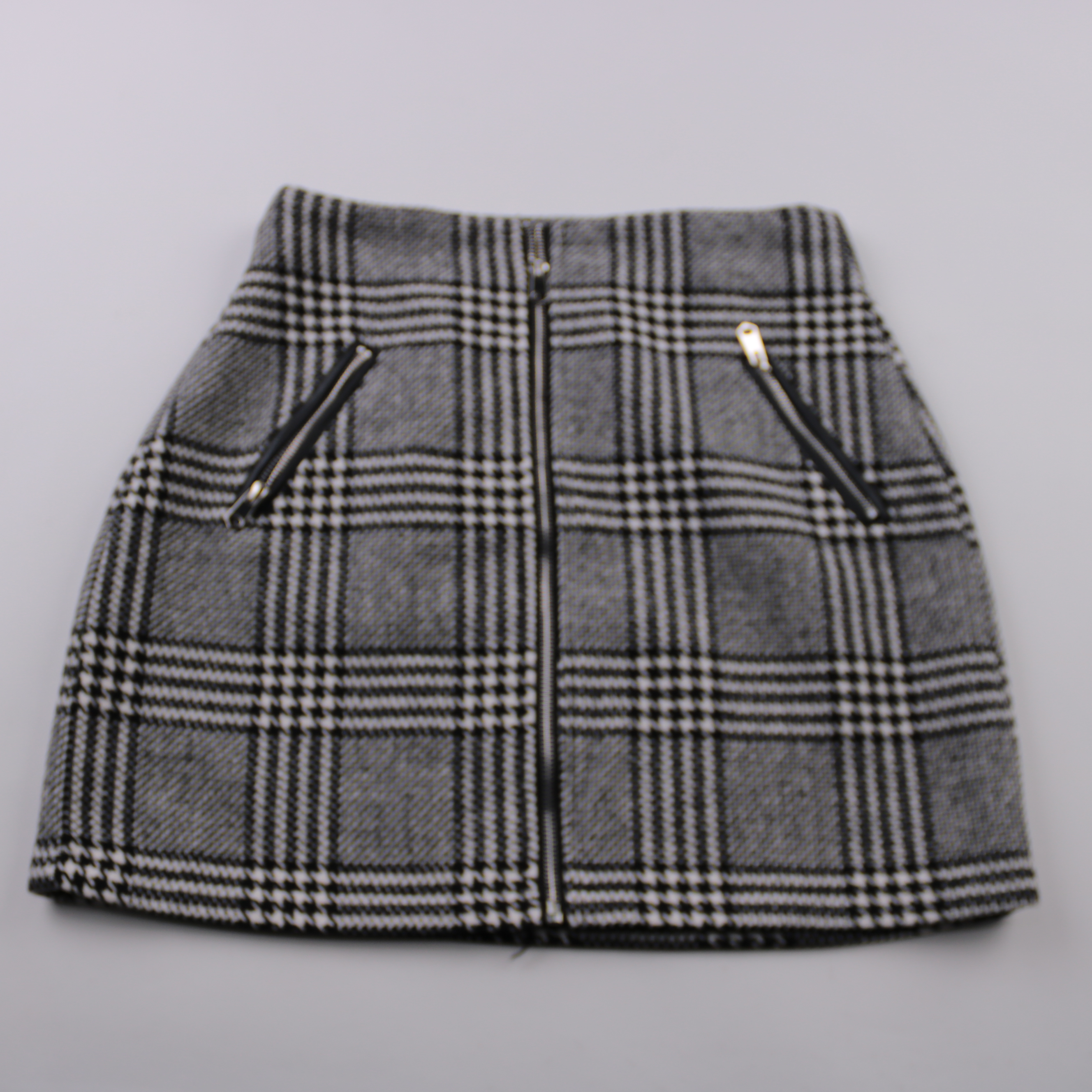 Юбка Amisu в серо-чёрную клетку с центральной молнией и карманами на молниях. Подойдёт для повседневных и офисных образов в прохладную погоду, хорошо сочетается с однотонными водолазками и жакетами. Плотная ткань держит форму, а подкладка делает посадк...