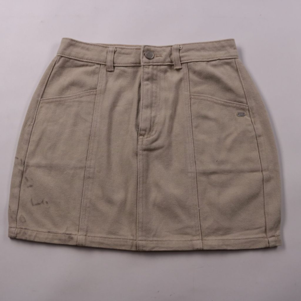 Юбка Pull&Bear из плотного хлопка в бежевом оттенке, с высокой посадкой и застёжкой на молнию и пуговицу. Подойдёт для повседневных образов в городе, на учёбу или прогулки, легко сочетается с футболками и рубашками. Практичный материал хорошо держит фо...