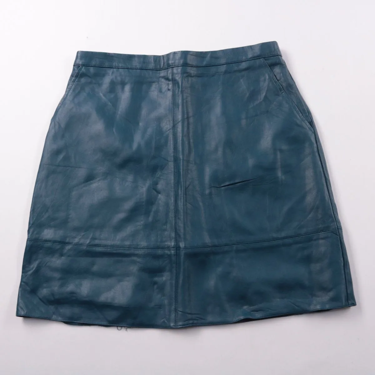 Юбка Atmosphere из искусственной кожи в синем оттенке, прямого силуэта с карманами. Подойдёт для повседневных образов и офиса с плотными колготками в прохладную погоду. Материал практичный в уходе и хорошо держит форму.