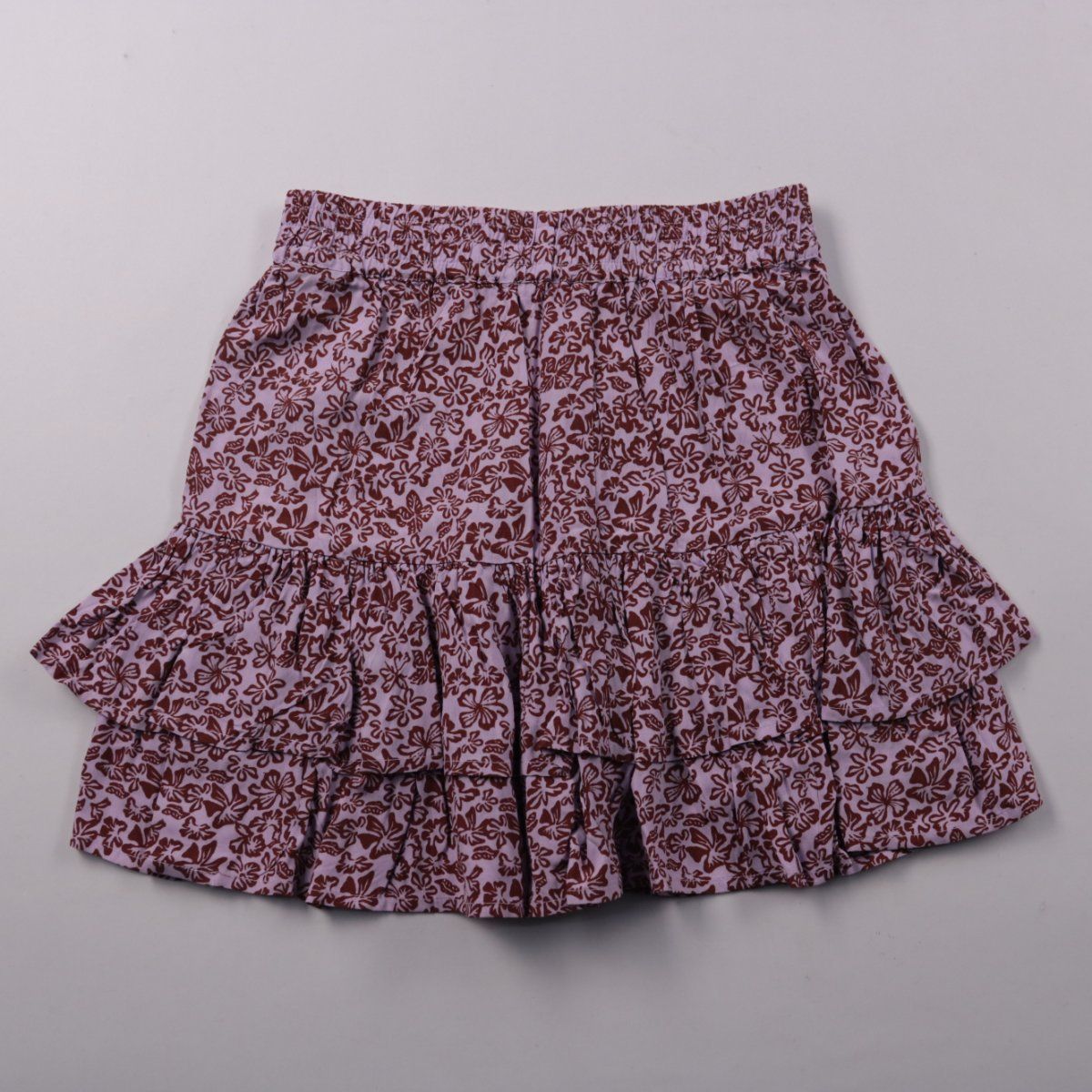 Лёгкая летняя юбка с цветочным принтом и многоярусными оборками на эластичном поясе. Подойдёт для повседневных прогулок и отдыха в тёплую погоду. Вискоза хорошо дышит и быстро сохнет после стирки.