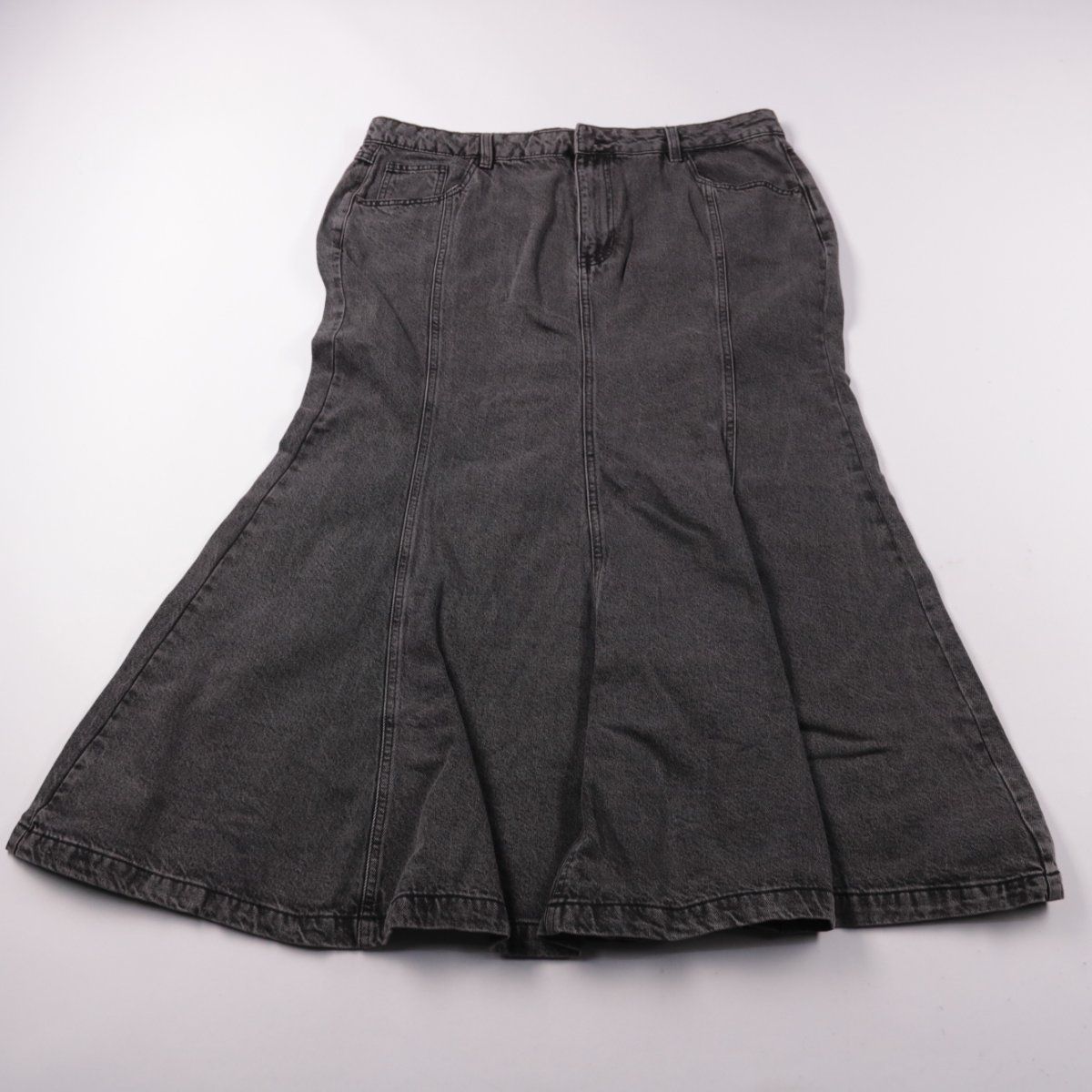 Джинсовая юбка George с расклешённым кроем и выстиранным серым оттенком. Подойдёт для повседневных образов в разное время года. Длинный фасон удобно сочетать с футболками, рубашками и свитерами.