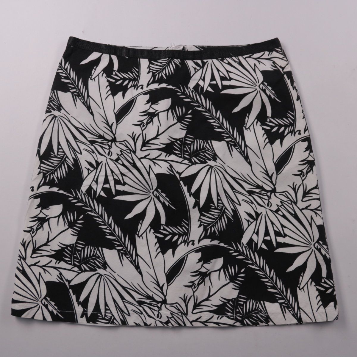 Юбка Lindex с чёрно-белым тропическим принтом и лаконичным поясом. Подойдёт для летних прогулок и повседневных образов с базовыми топами и футболками. Есть подкладка, поэтому ткань меньше просвечивает и юбка комфортнее в носке.