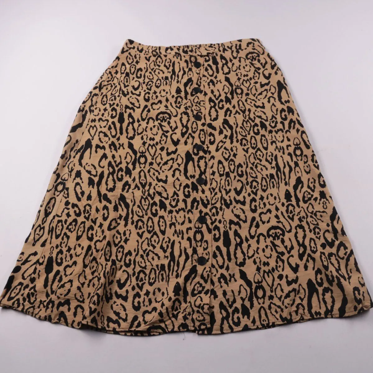 Женская юбка LC Waikiki с леопардовым принтом и застёжкой на пуговицы спереди. Подойдёт для летних и тёплых демисезонных образов на каждый день. Лёгкая ткань и расклешённый крой не стесняют движения.